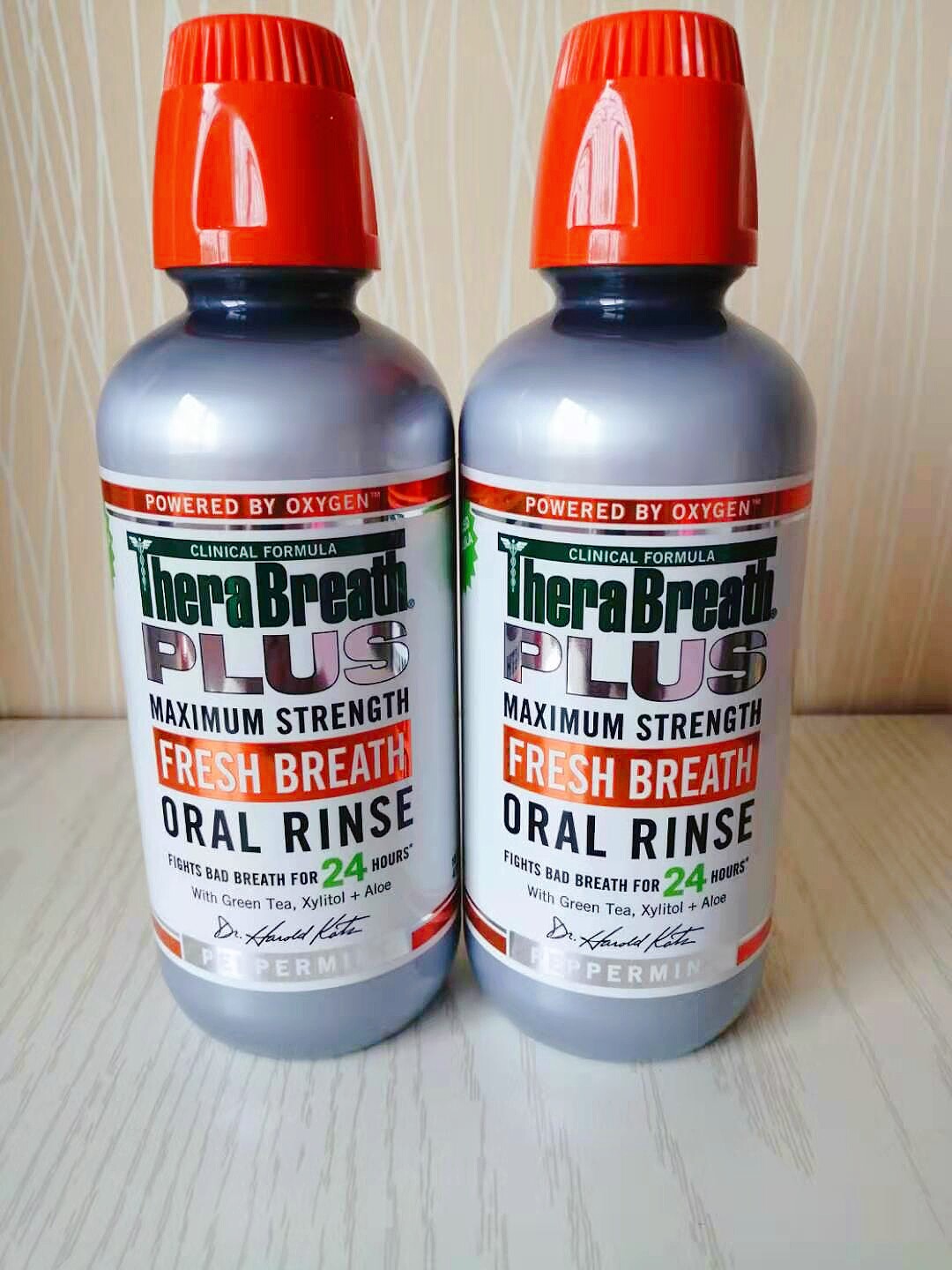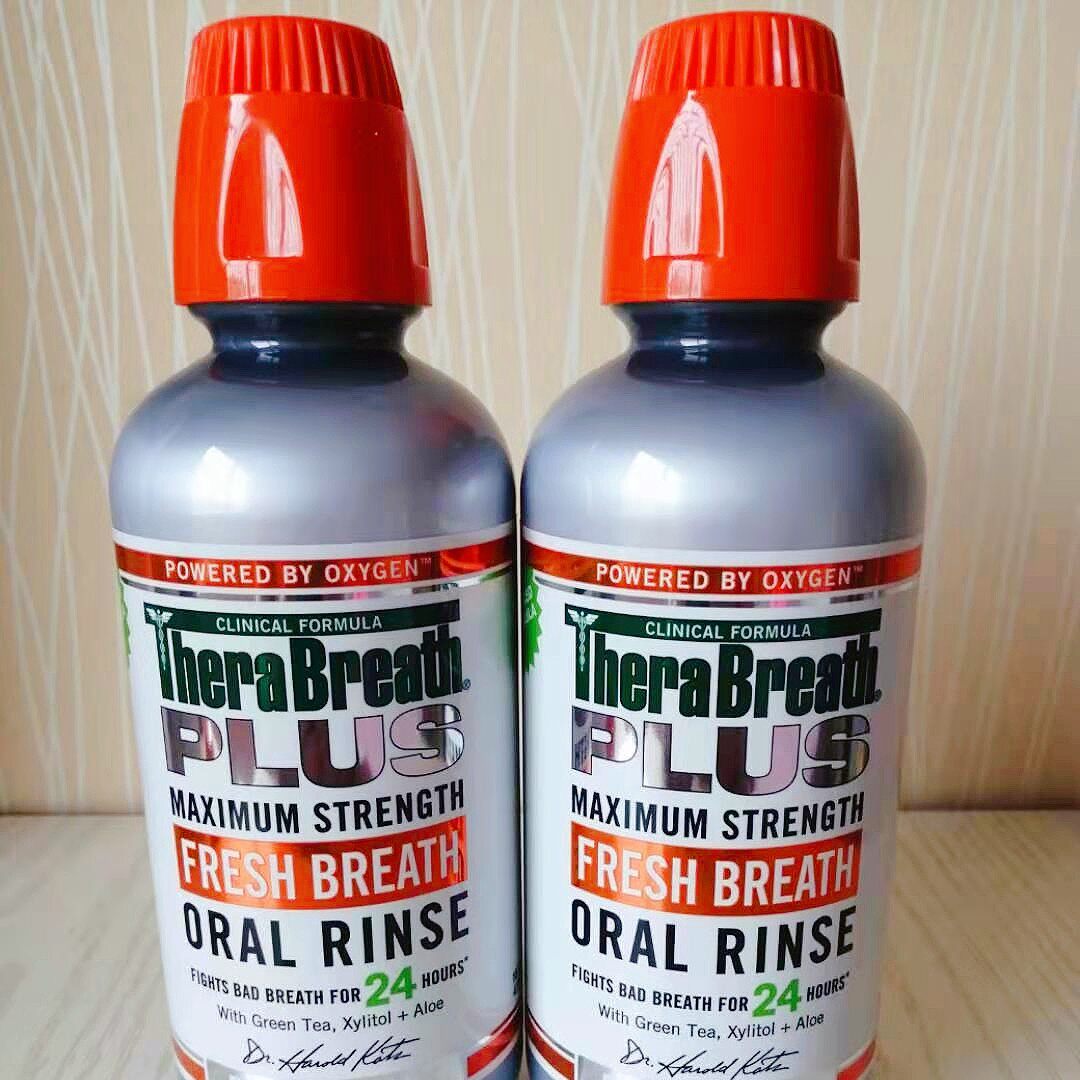 2 bottle country TheraBreath Plus large strength silver gray mouthwash to stink tonsil stone