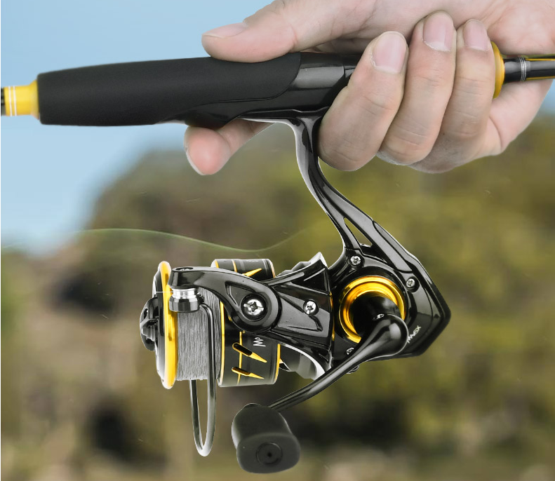 The direction of the handle of the fishing wheel: