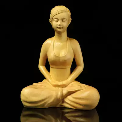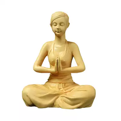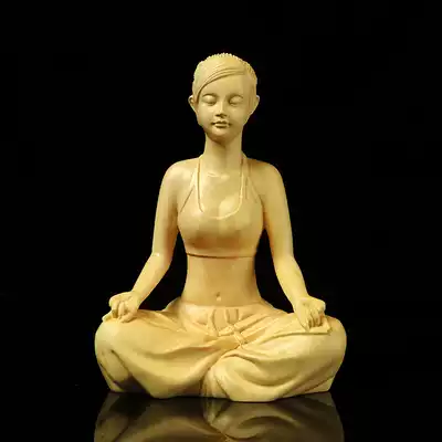 Boxwood carving creative home yoga hall decoration Zen character statue Beauty tea ceremony tea pet Wooden craft gift decoration