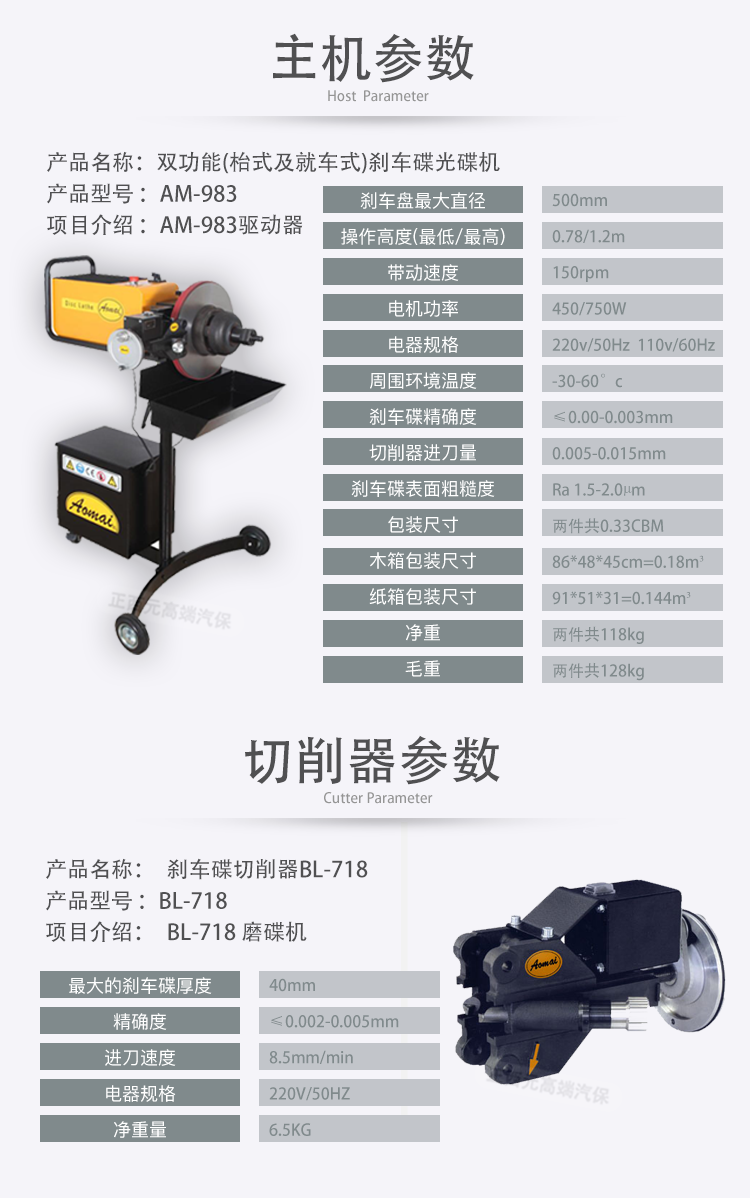 German Aomai brake disc disc machine AM-983 dual-purpose repair machine brake disc polishing machine disc machine disc grinder
