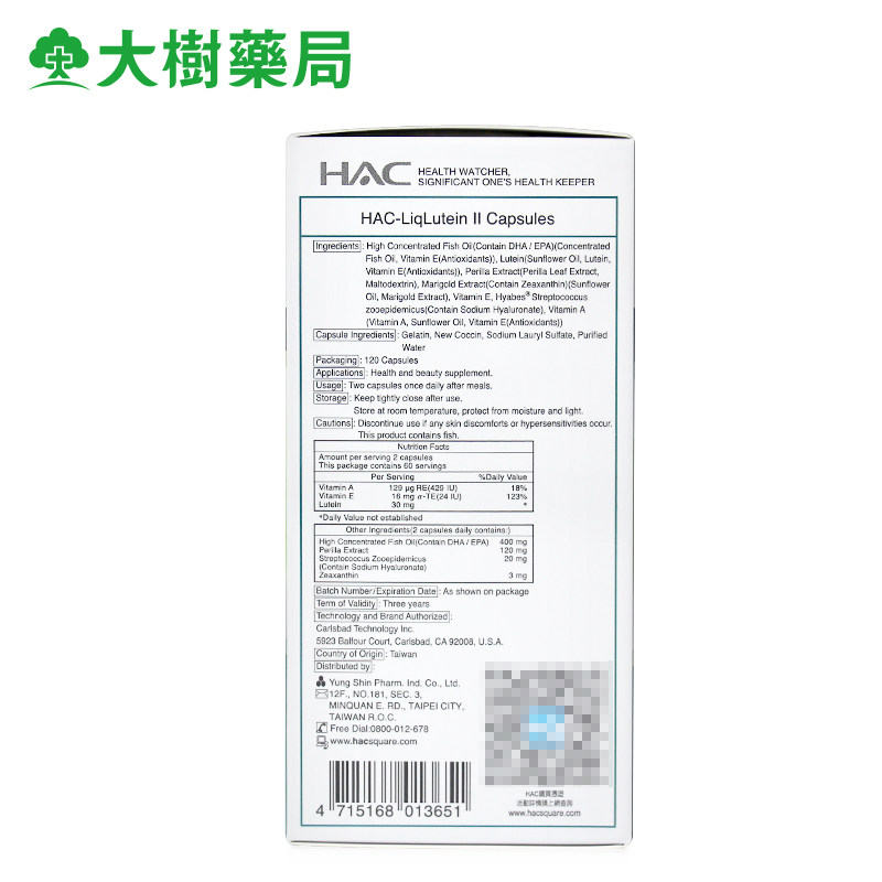 Yongxin HAC crystal bright leaf yellow capsule 120 grain relieves sight fatigue protection eyesight
