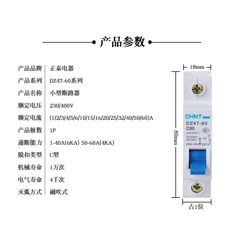 Positive Thai DZ47-60 Breaker Home Air Switch Monopole 1P 10A16A20A25A32A40A60A
