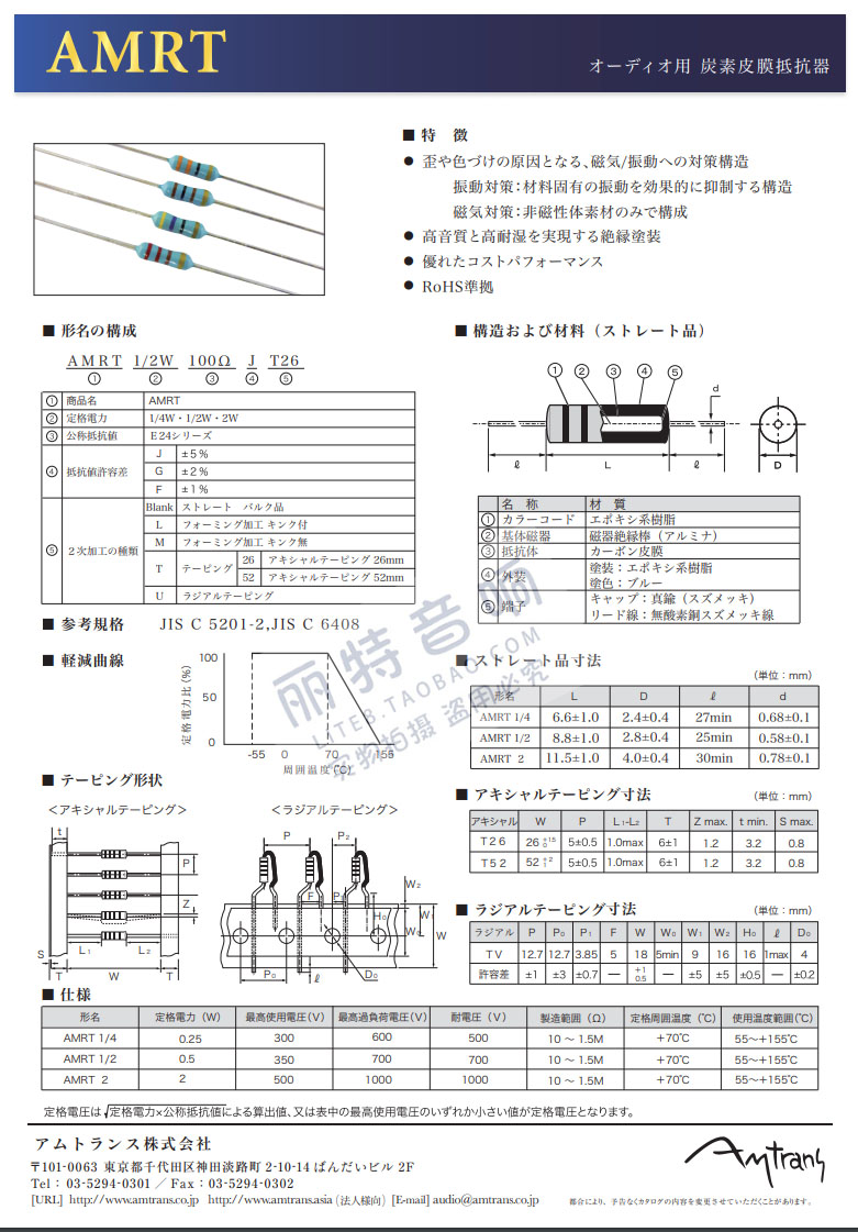 Original Japan National Treasure AMRT 1 2W 1 4W Audiophile Audio Exclusive Non-magnetic carbon film resistor