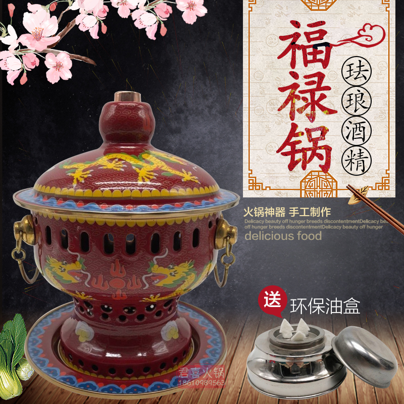 New cloisonne copper pot pure red copper thickened pure copper alcohol small copper pot single small hot pot alcohol stove one person one pot