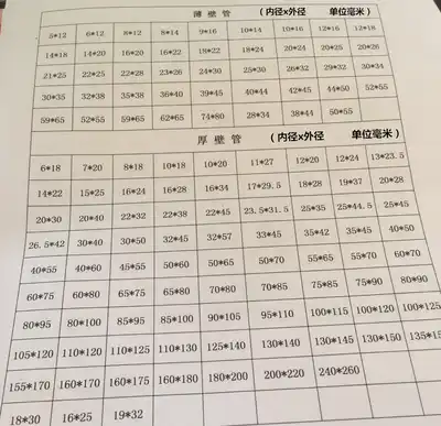 Outer diameter 12 * inner diameter 6 * length 2 m outer diameter 12 * inner diameter 5 * length 2 m outer diameter 16 * inner diameter 10 * length 2 m outer diameter 16 * inner diameter 12 * length 2 m outer diameter 18 * inner diameter