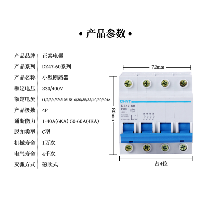 Zhengtai DZ47-60 circuit breaker 380v air switch quadrupole 4P 10A16A20A25A32A40A60A