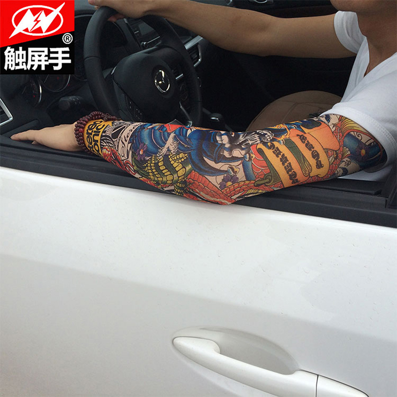 Riding sleeves tattoo sleeves tattooed sleeves tattooed young men and women Flowers Arm Outdoor Sunscreen Sleeve Tinged Green Arm Jacket Arm NB Wear