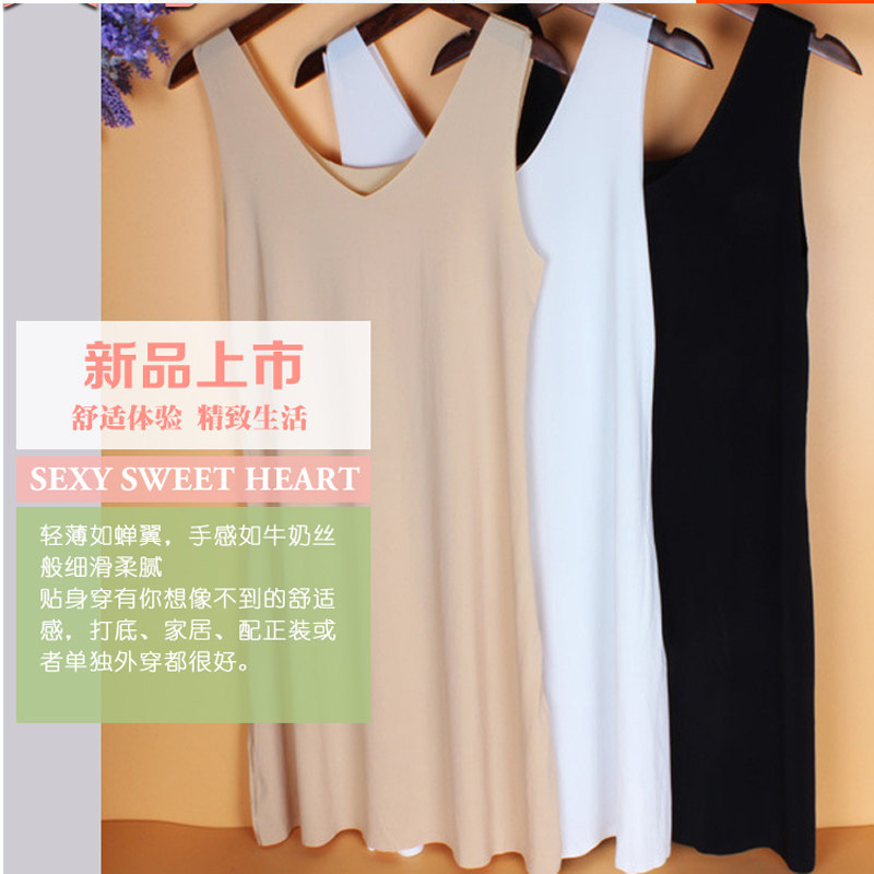 Summer ultra-thin ice silk nightdress loose fat mm200 catties plus fertilizer to increase ice silk bottoming skirt seamless pajamas women