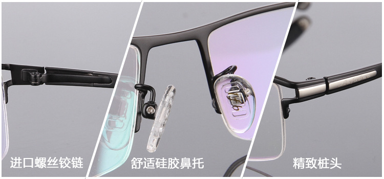 Pure titanium ultra-light business fashion Qi Mei half-frame glasses frame black gun color myopia half-frame glasses frame