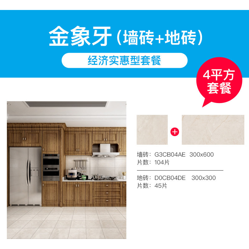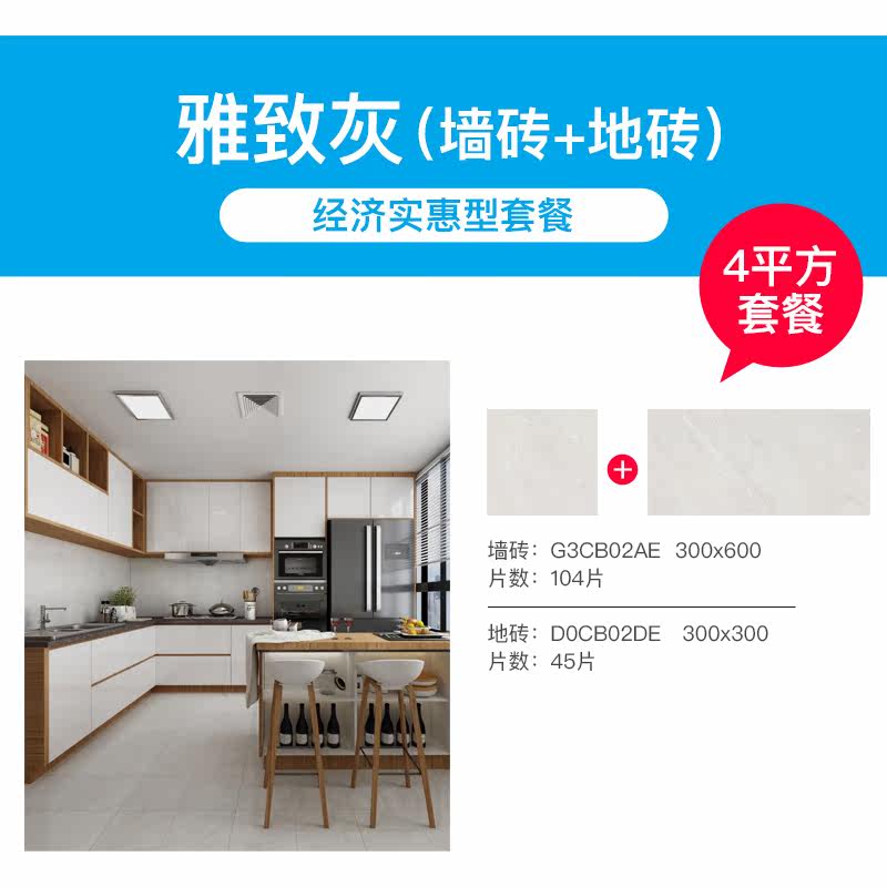 Eagle tiles 4 square meters of tiles Standard kitchen and bathroom package wall tiles 104 pieces Floor tiles 45 pieces