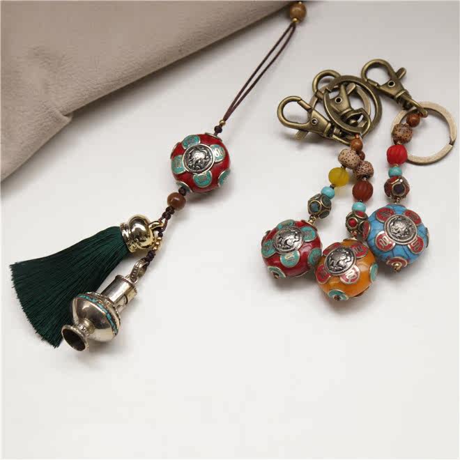 New Pint DIY Retro National Wind Custom Eight Treasure Decorated With Key Button Flow Subag Hanging Honey Wax Green Pine Stone