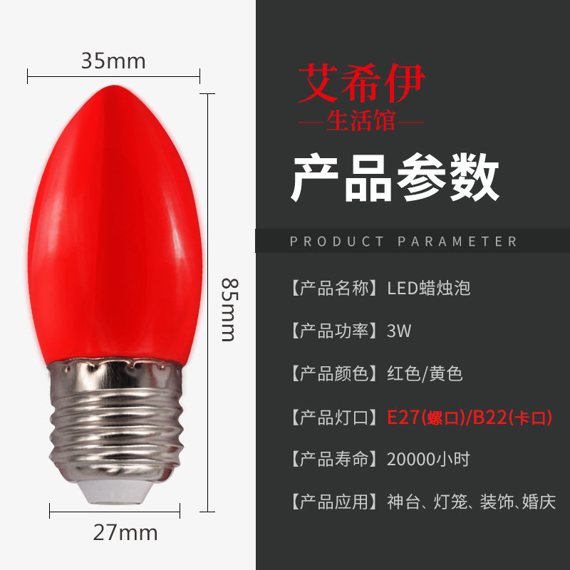 LED red light bulb Shentai E27B22 candle lamp Changming sharp bubble Home outdoor waterproof lantern energy saving lamp