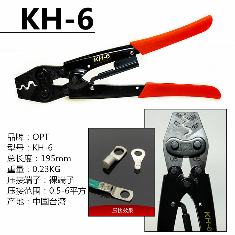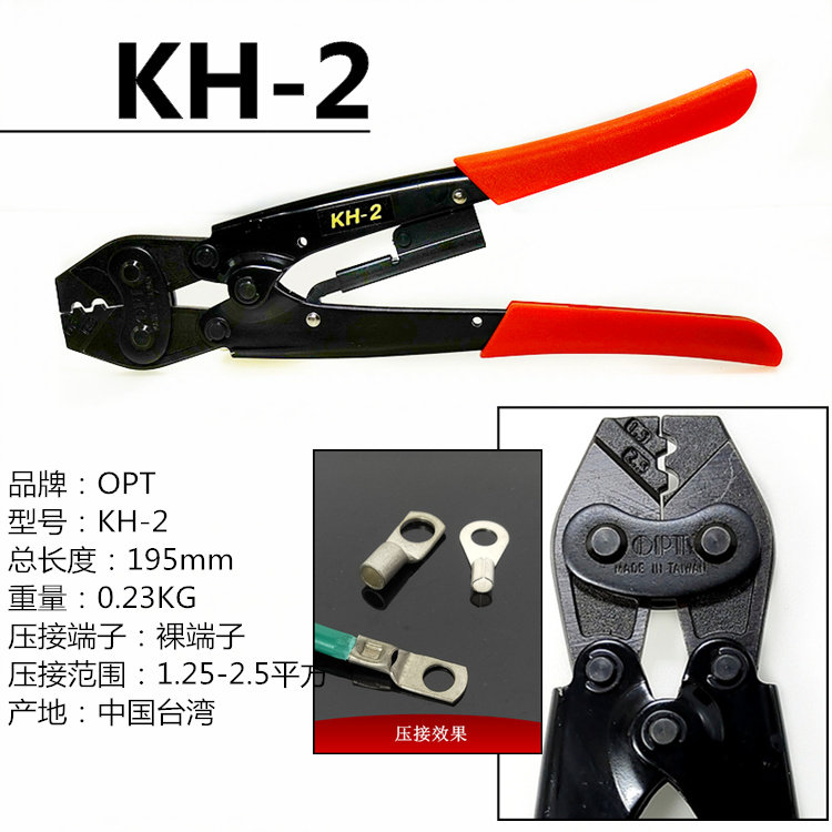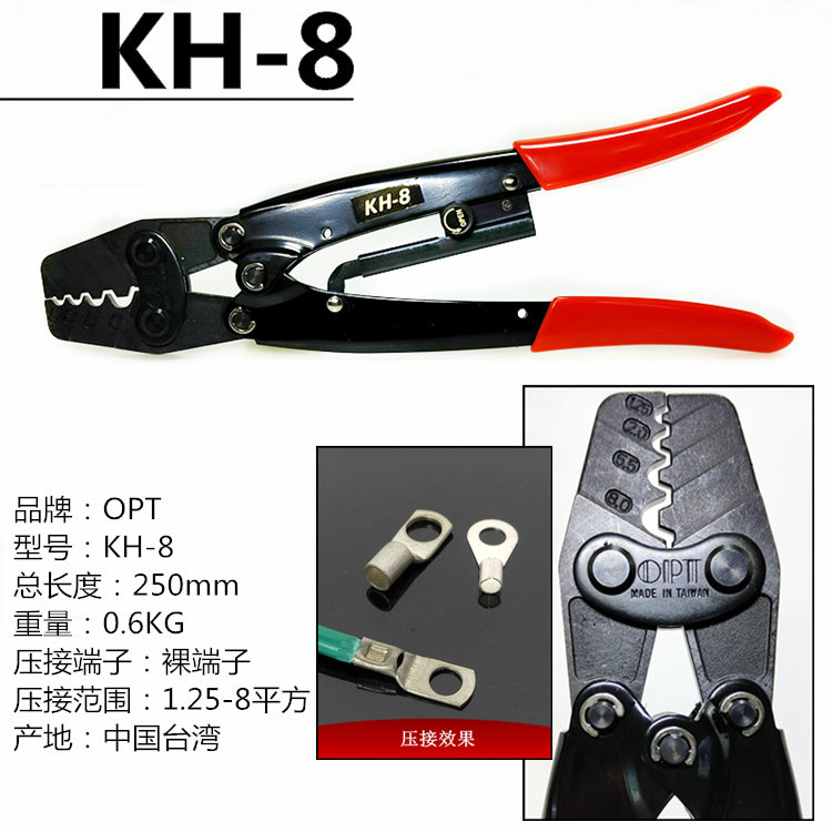 Taiwan OPT imported crimping pliers ratchet cold press pliers bare terminal nipple cap crimping pliers KH-2 6 8 13
