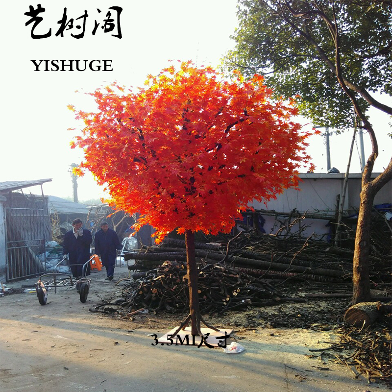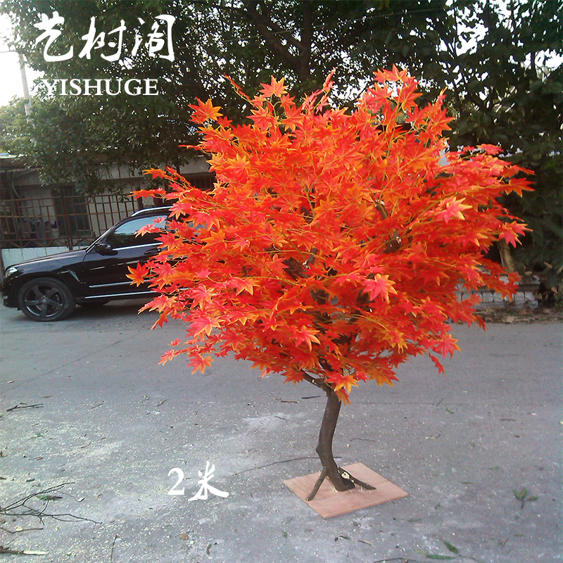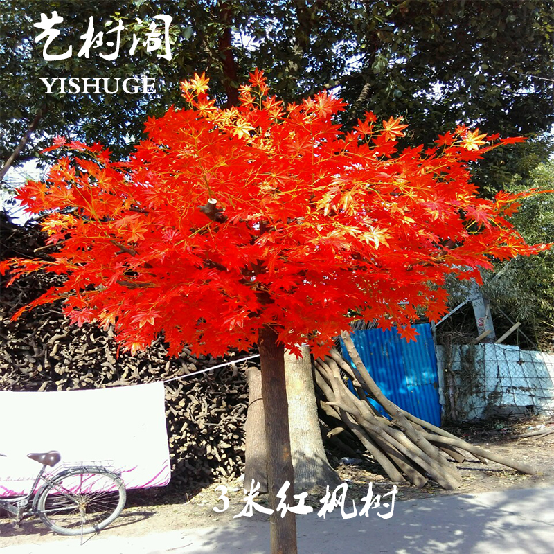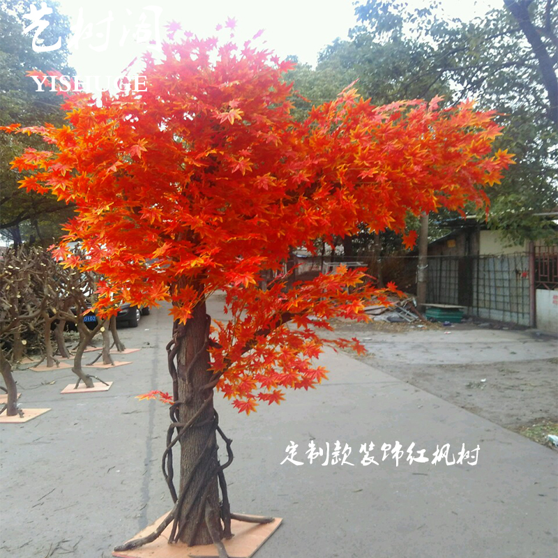 Simulation Red Maple Tree Green Maple Leaf Tree Indoor Decoration Fake Tree Living Room Hotel Mall Building View Dry Branches Floor Pendulum
