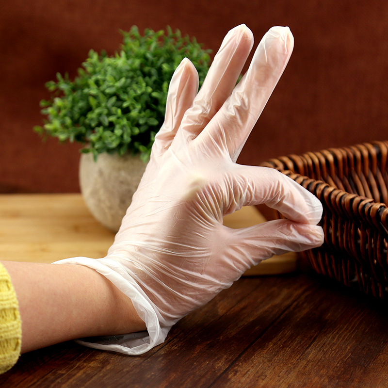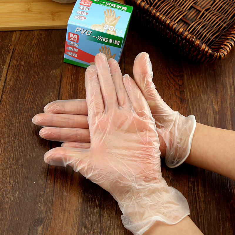 Disposable pvc gloves mounted oil-proof gloves catering kitchen baking film gloves thickened transparent film