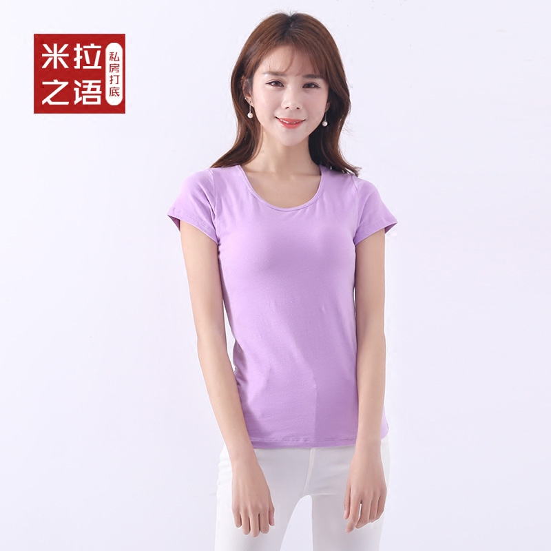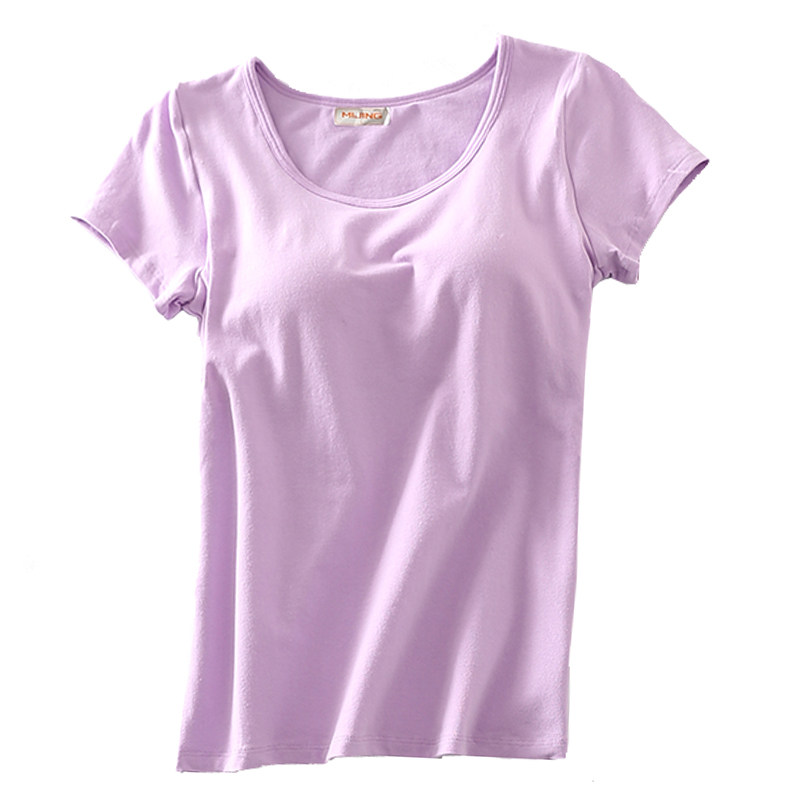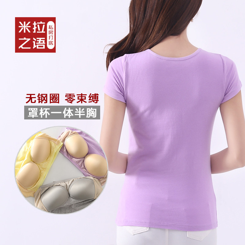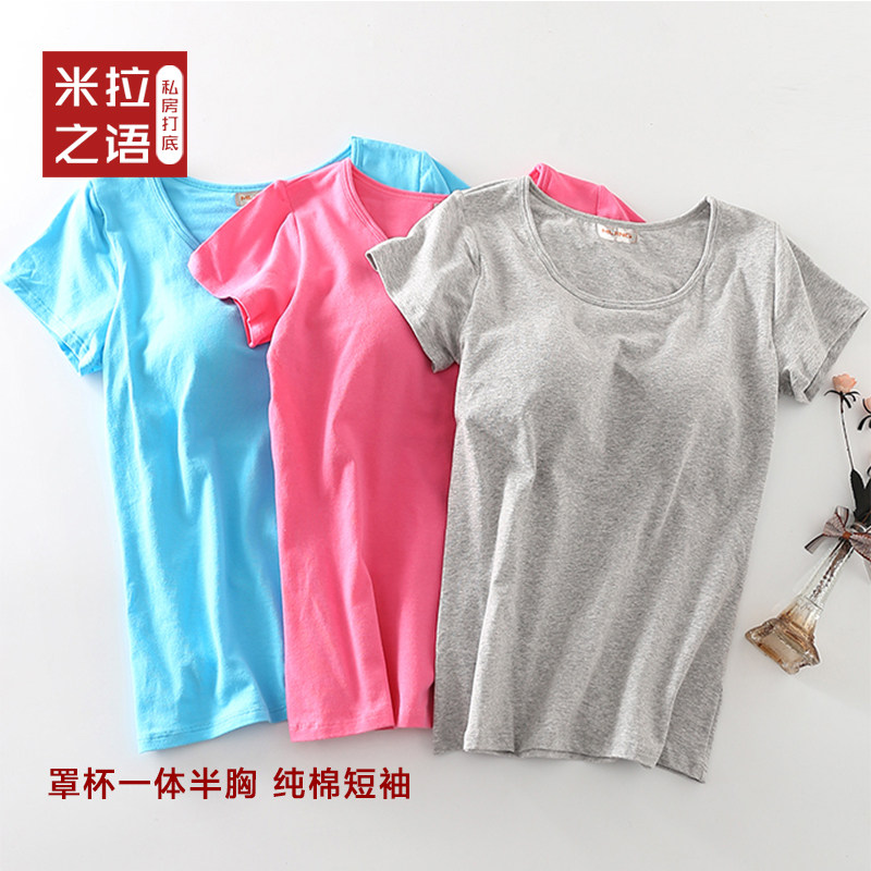 Pure cotton women with chest pad bra-free cup one-piece half-sleeve T-shirt Short sleeve thin sexy casual slim-fit base shirt