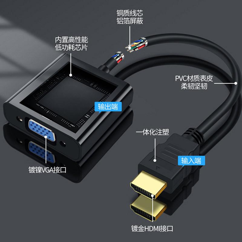 HDMI to VGA wire converter with audio port HD to vga interface video box projector
