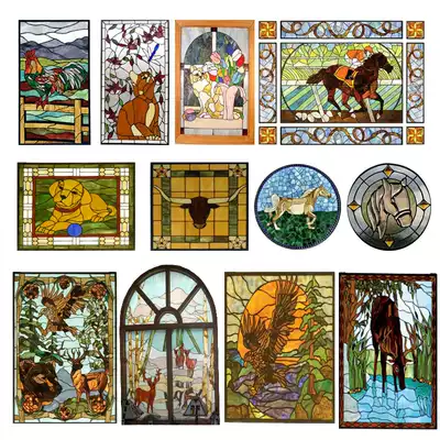 Custom Church color art inlaid glass theme wall hanging entrance entrance background wall partition screen (animal)