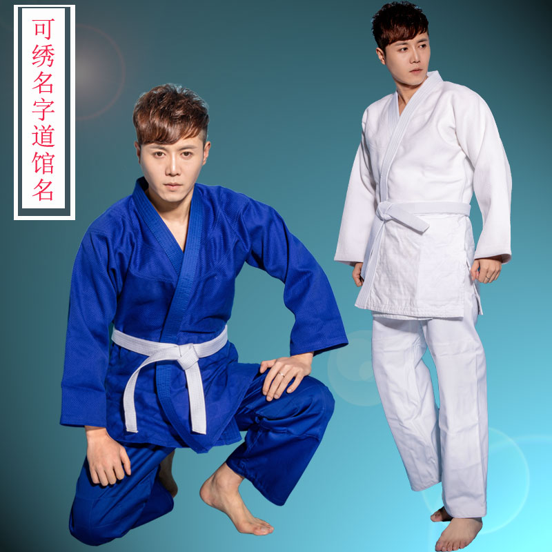 Judo clothing pure cotton thickening group purchase adult children male and female judo training Dao costume factory direct for customizable blue and white