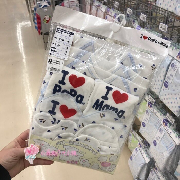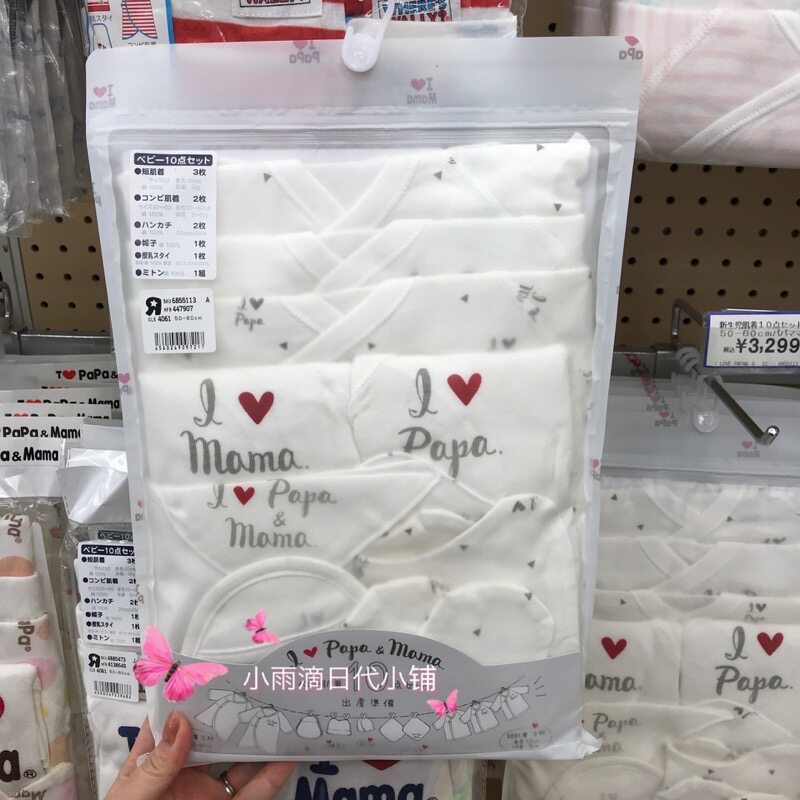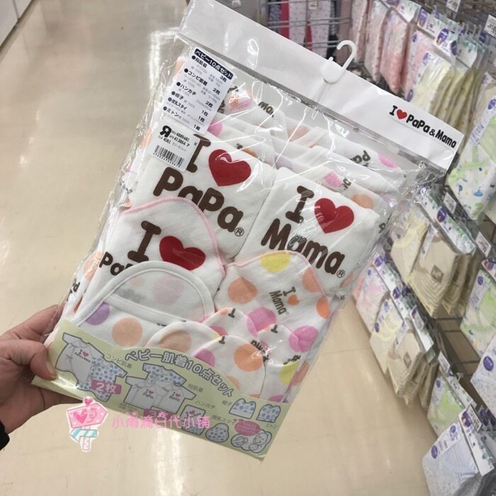 Spot Japanese native I LOVE PAPA-MAMA newborn infant pure cotton butterfly romper 10-piece set