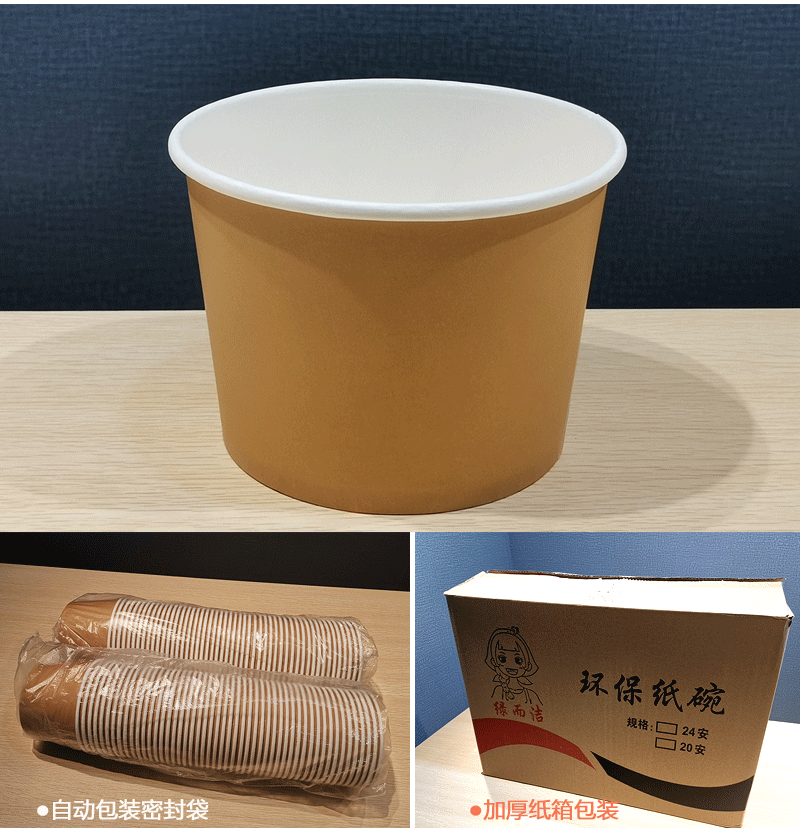Green and clean paper bowl disposable 1250ml thickened commercial packaging box Soup bowl instant noodle bowl with lid round delivery lunch box