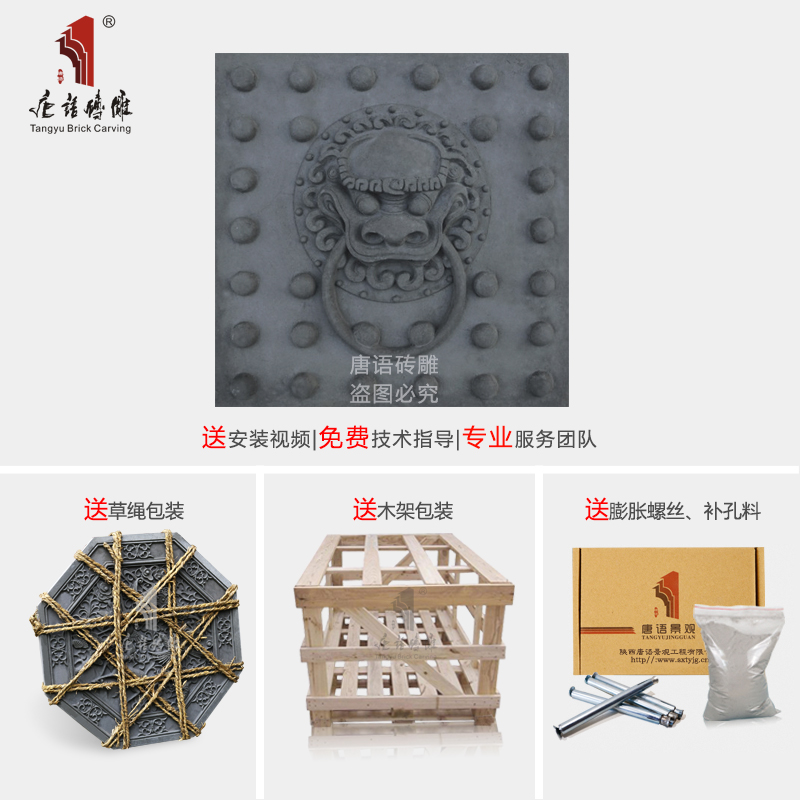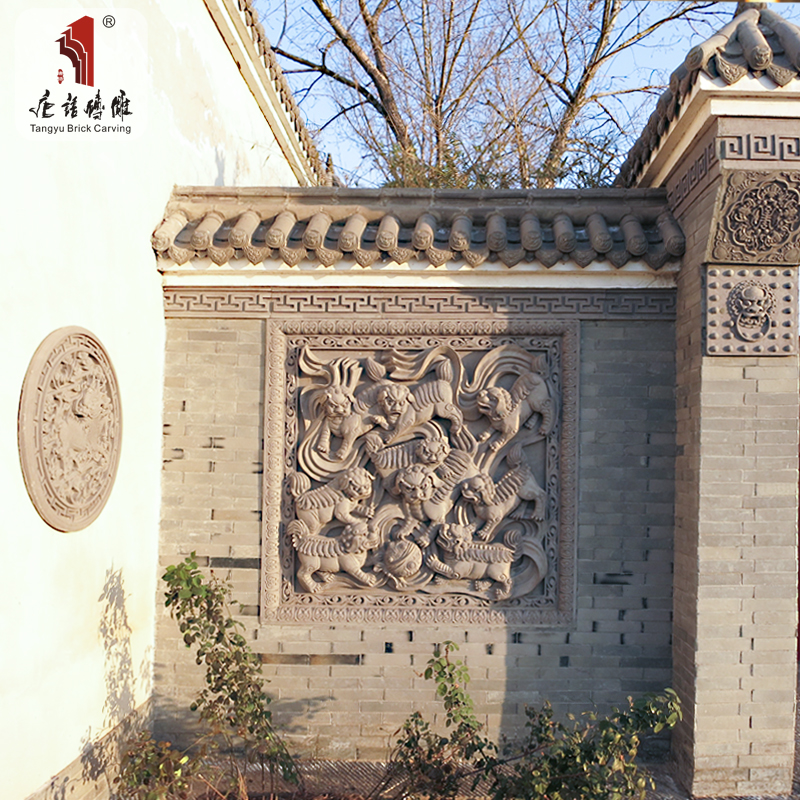 Tang language animal head door ancient building blue brick old brick carving antique relief painting Chinese style shadow wall wall wall decoration building materials