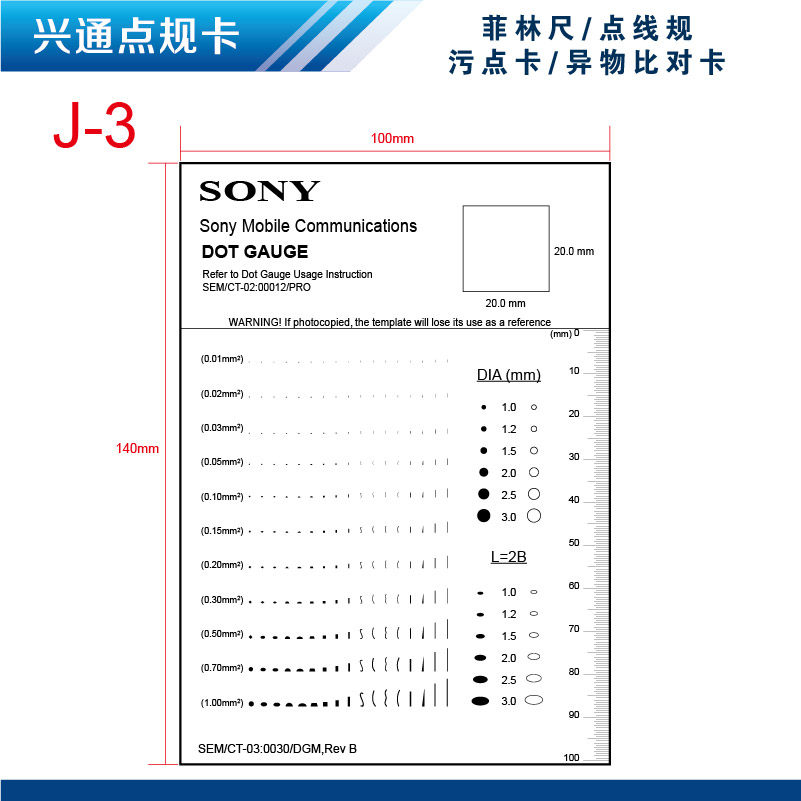 SONY stain number card point line gauge stain detection card comparison card gauge fillin ruler J-666-123-0B