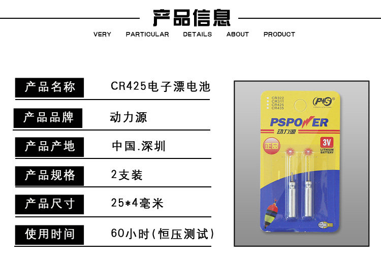 Power source CR 425 battery phishing electronic drift electronic drift electronic drift drift Apople battery night fishing drift