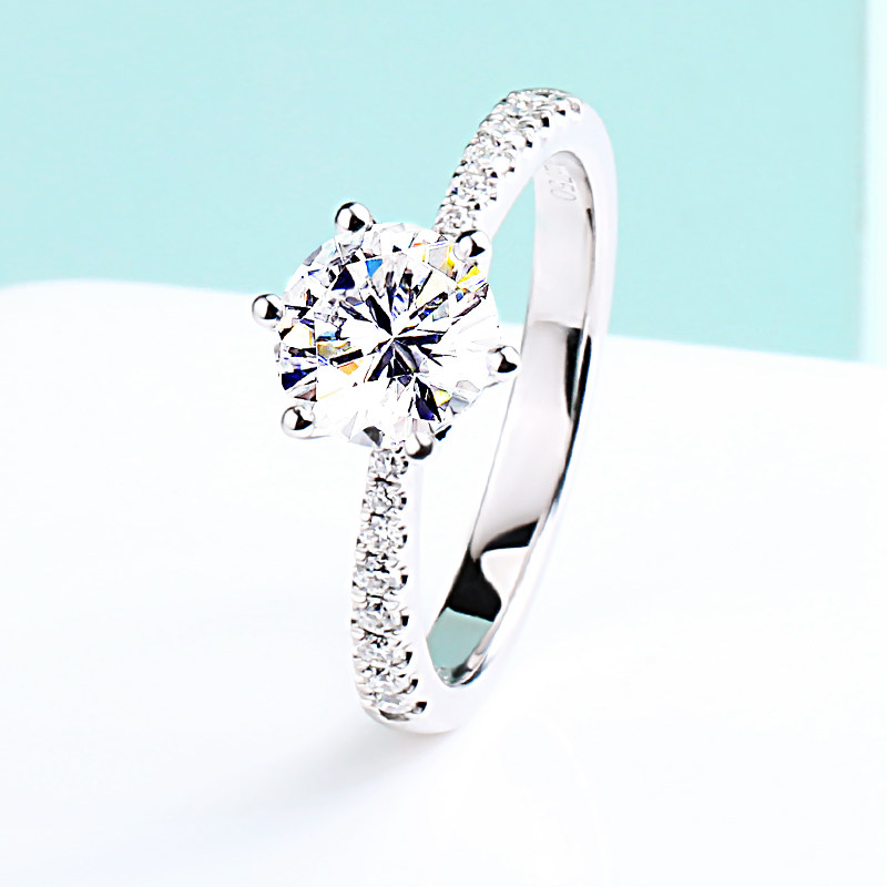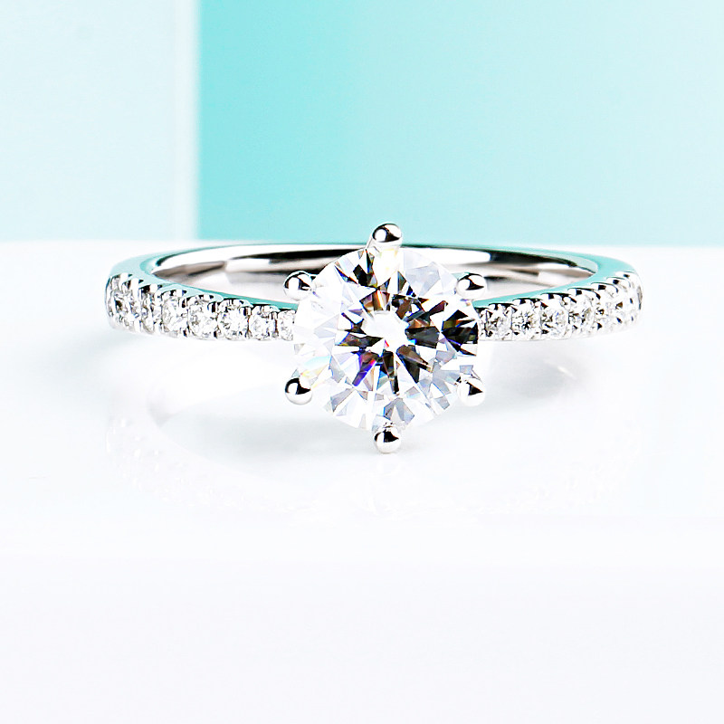 American CC Mosanstone Ring Woman 18K Platinum 1 Clapper 6-claw crown Crown Platoon Drill Imported Advanced Texture Drilling Ring