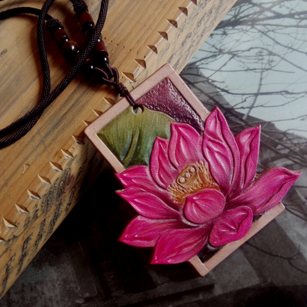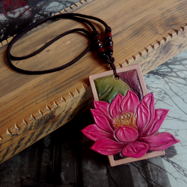 Handmade genuine leather accessories Order the Bull Leather Sculpture Flower Painted Lotus Woman Money Chain Hanging Accessories