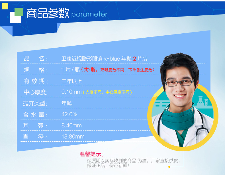 2 pieces) Weikang disposable contact myopia glasses high water height flagship store official official website thin mirror jz