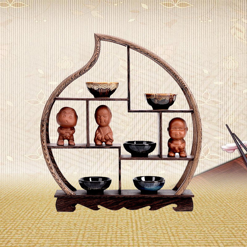 Red Wood Bou Ancient Shelf Small Multi-Treasure Cabinet Chicken Wings Solid Wood Tea Set Purple Sand Teapot Shelf Bonsai Display Shelf-Taobao