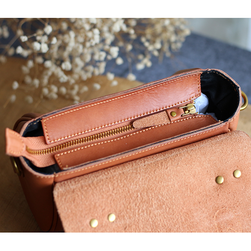 Rongqing Retro Original Handmade Small Messenger Bag Vegetable Tanned Cowhide Messenger Bag Literary Leisure Shoulder Bag Ladies Bag