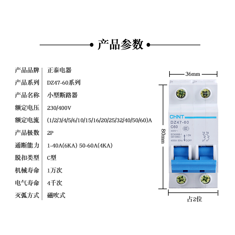 Chint DZ47-60 circuit breaker household air switch bipolar 2p 10A16A20A25A32A40A60A