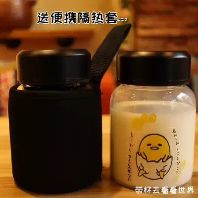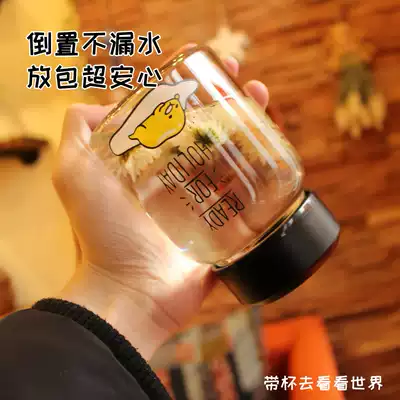 Creative cute glass portable mini small water cup Female student Korean fresh transparent simple cup with lid