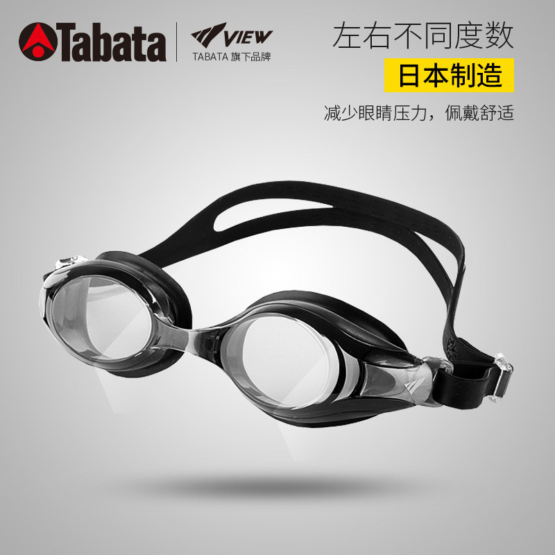 TABATA Swimming mirror HD Anti-fog myopia left and right Different large frame swimming glasses swimming cap suit male and female