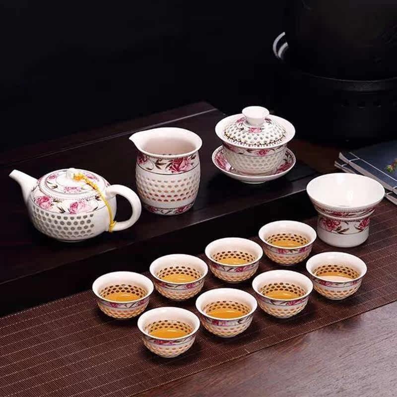 Honeycomb tea set 13 pieces (gold jade full hall) honeycomb tea set 14 pieces (gold jade full hall) honeycomb tea set 13 pieces (rich and expensive auspicious) honeycomb tea set 14 pieces (Fugui auspicious) honeycomb tea set 13 pieces (