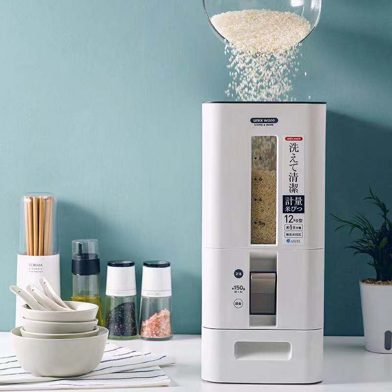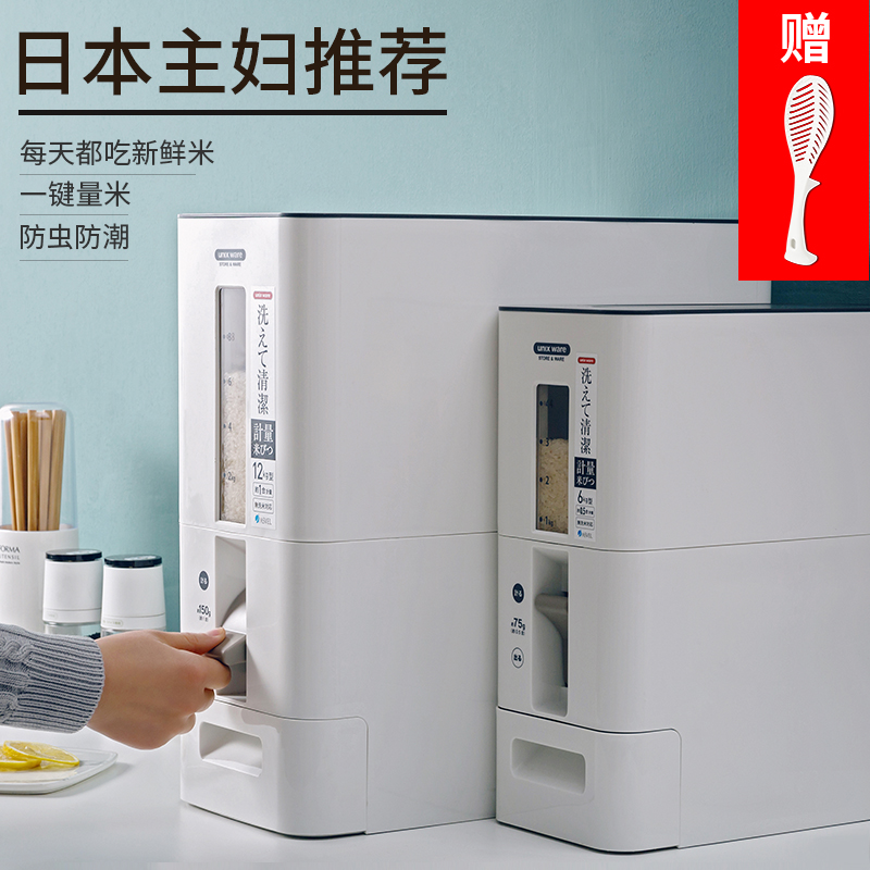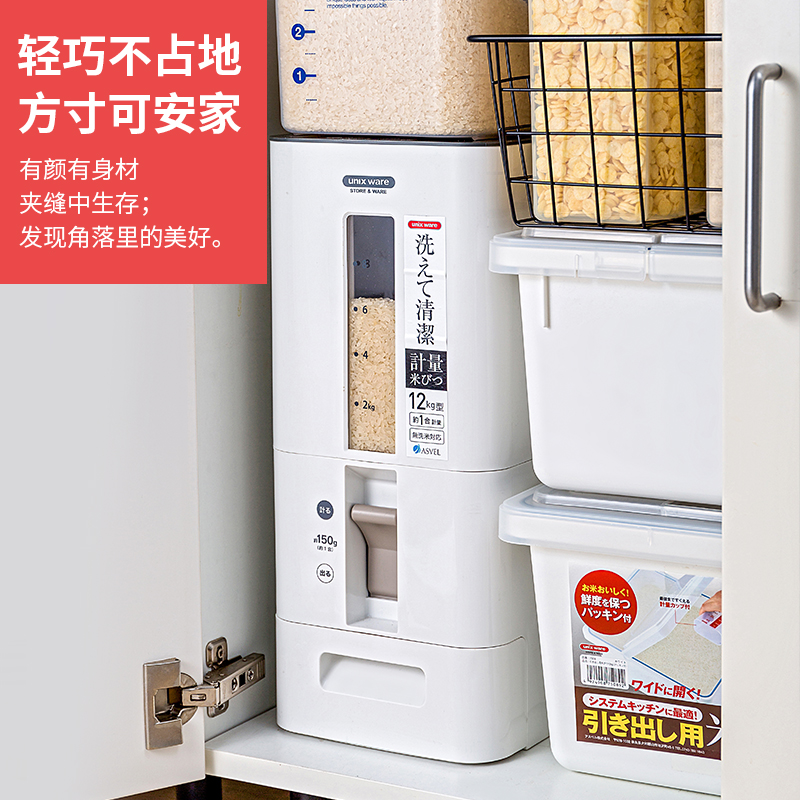Japan Asvel rice bucket insect-proof moisture-proof sealed barrel household rice storage box kitchen metering 10 20kg rice tank rice box