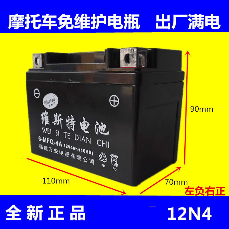 Motorcycle maintenance free battery dry battery small pedal 50 two stroke chic Mulan 12N4A female 4ah