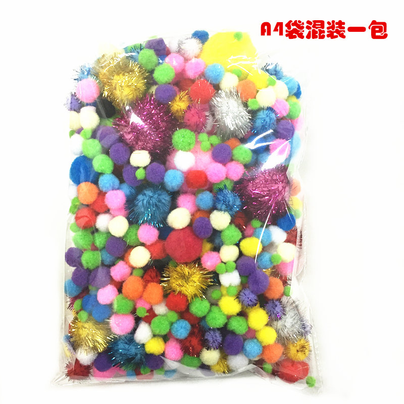 Size mix A4 bag a pack of 50mm gross balls 30 mulling 30mm wool balls 30 mulling 15mm wool balls about 100 5mm Mini gross balls 10MM small hairy balls about 300