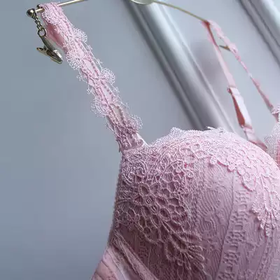 Spring Peach Blossom Dance Deep V Thin Pink Large Size Gap Adjusting Underwear White Small Chest Underwear Bra