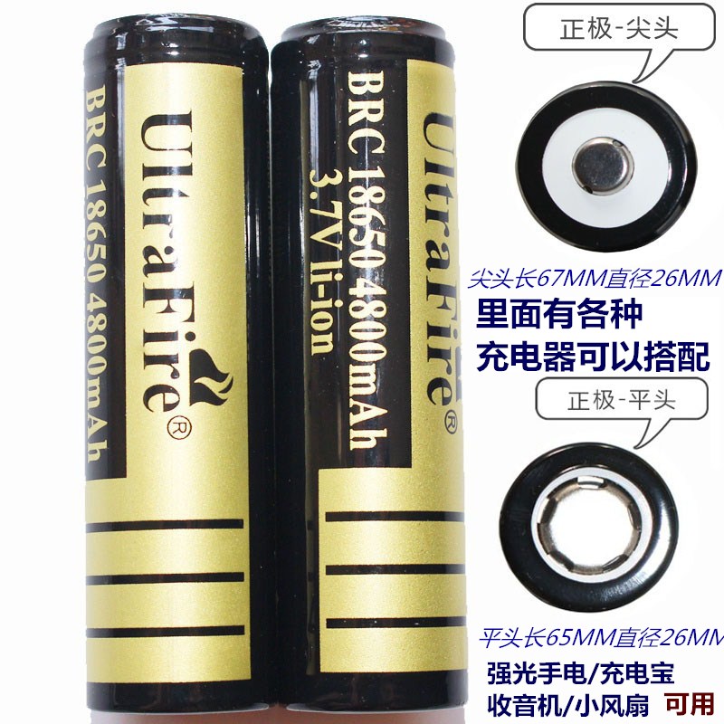 18650 Lithium battery (tip) 2 pcs single charge 1 pcs A product