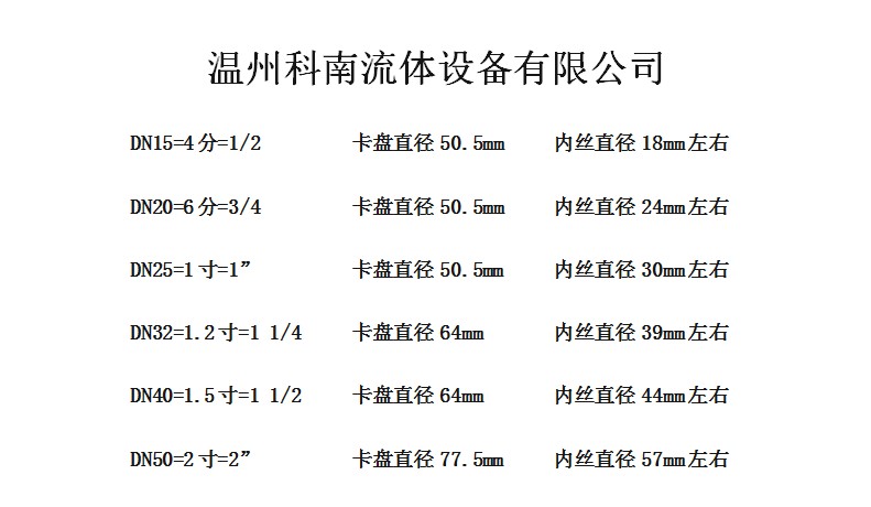 Hot selling Conan stainless steel 304 material sanitary chuck type threaded joint quick-install inner wire complete specifications