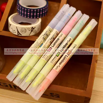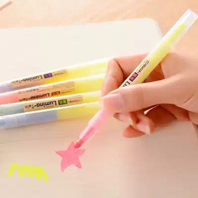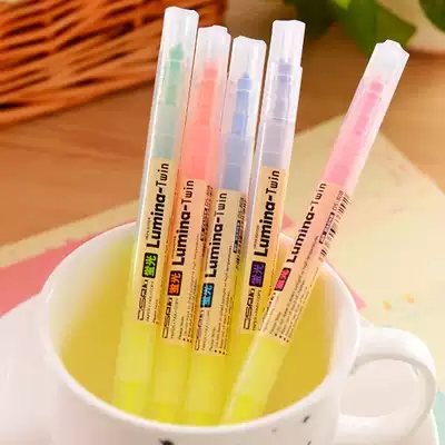 Creative stationery point stone fluorescent pen Road rice double-head two-color fluorescent pen simple oblique head marker pen marker pen