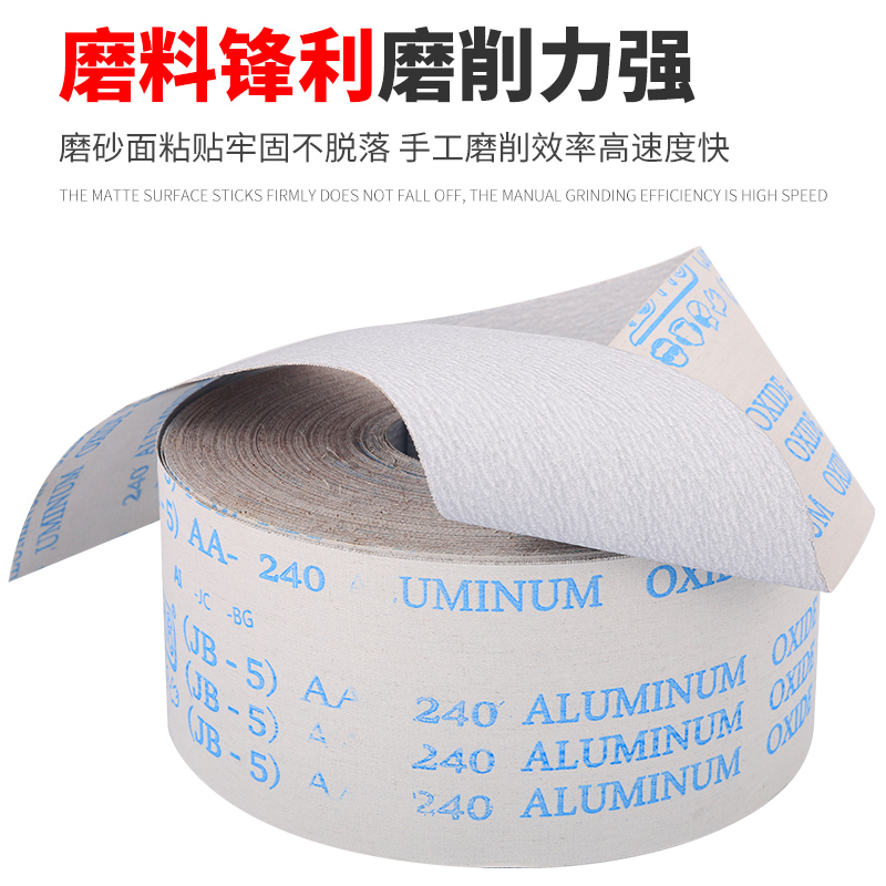 Coated hand torn abrasive cloth roll soft cloth TJ1164 5 inch white sandpaper roll paint furniture woodworking metal polishing sanding