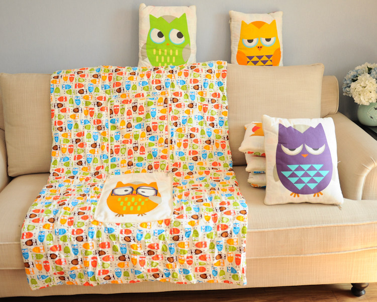 Pure cotton Korean version of owl holding pillow by car air conditioning by the office in the afternoon by holding pillow blanket-Taobao