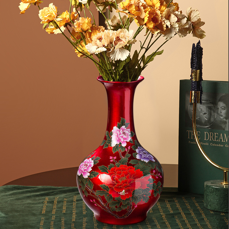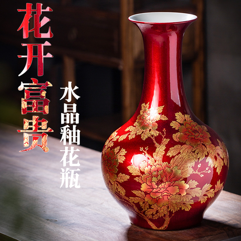 Countertop Vase Jingdezhen Ceramics Chinese Red Crystal Glazed Flowers Blooming Wealthy Modern Home Decoration Living Room Ornament