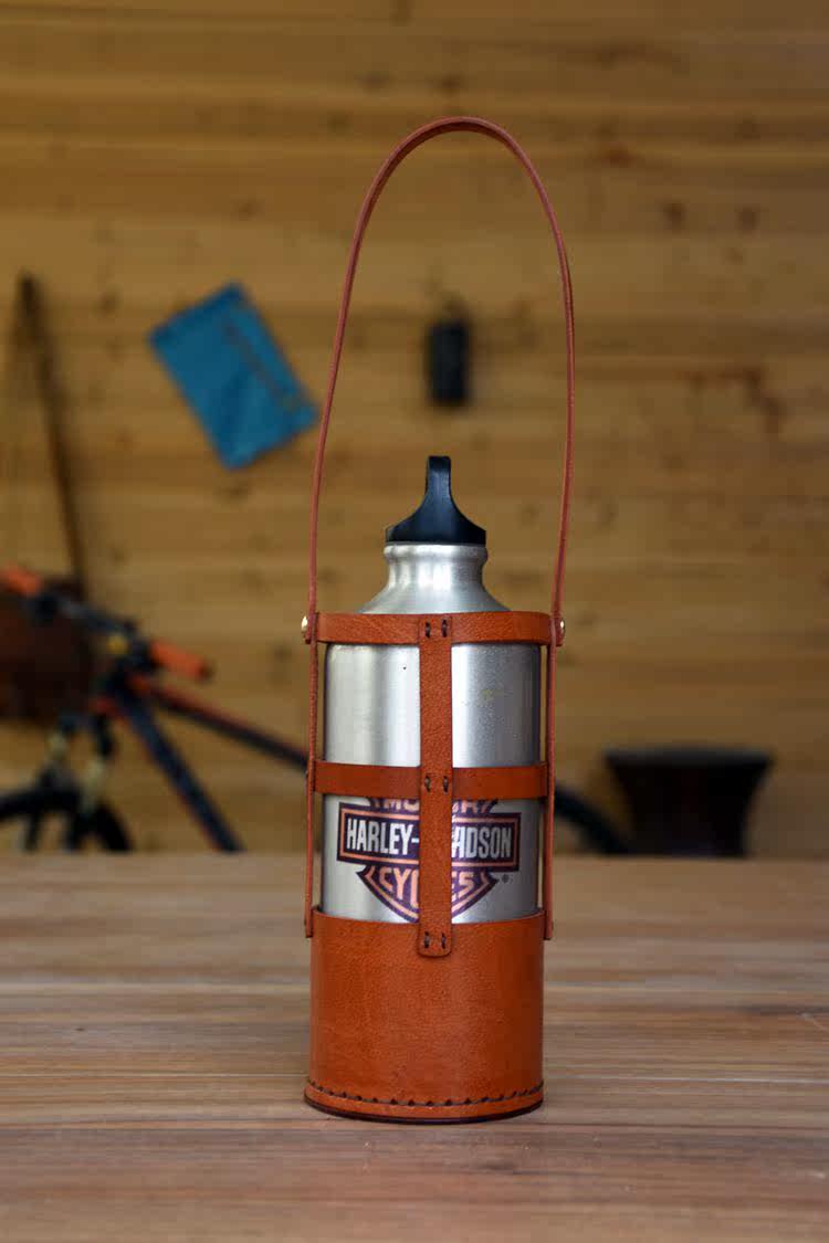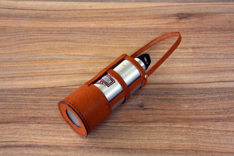 Handmade custom cowhide outdoor sports kettle cover cup cover with rope insulation pot cover