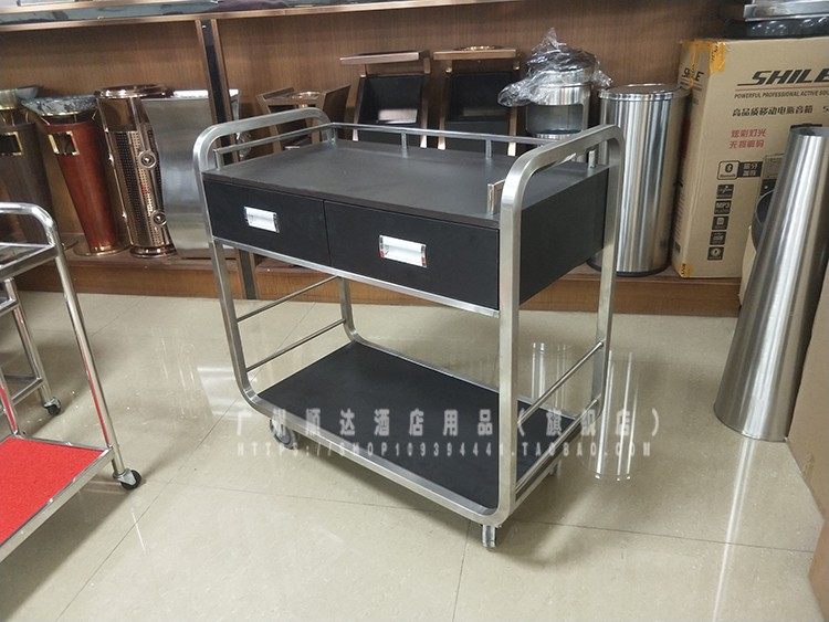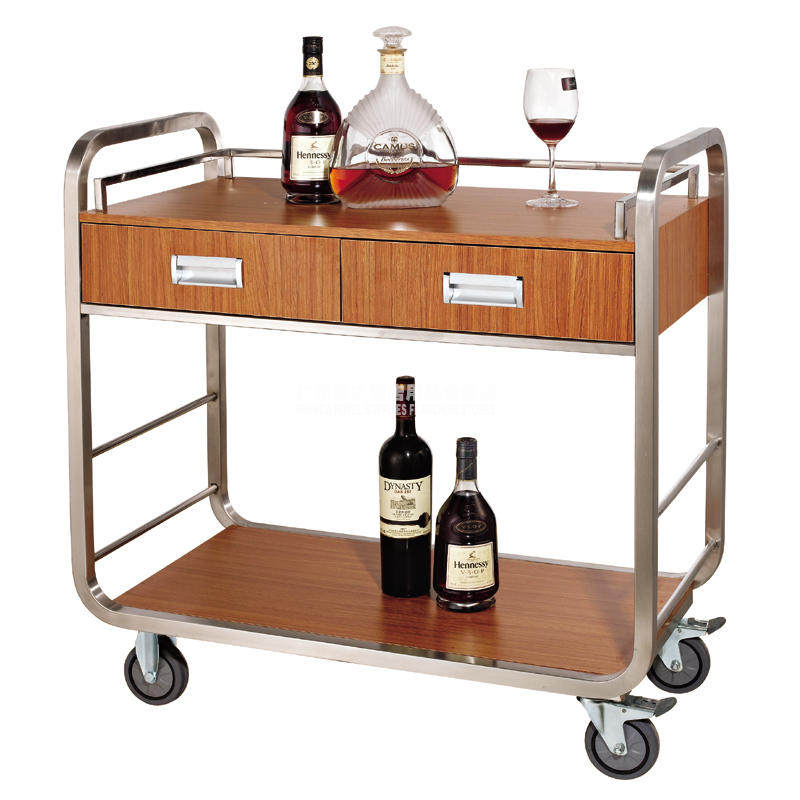 Hotel dining room High-end wine service car Luxury wooden double-decker with drawer wine car tea cart