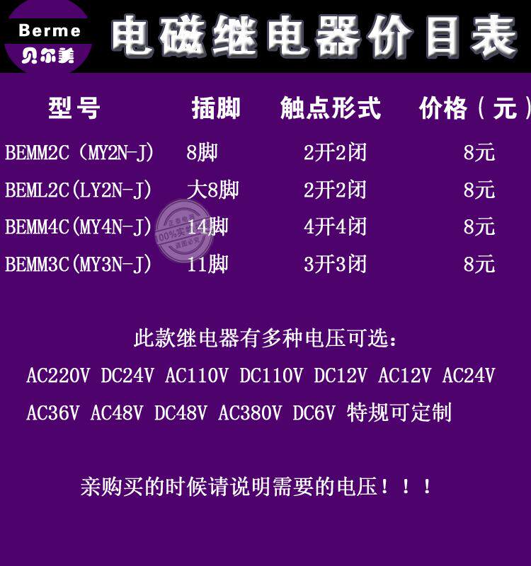 Berme Belmey intermediate relay MY2N-J 8 feet small relay BEMM2C two open and two closed